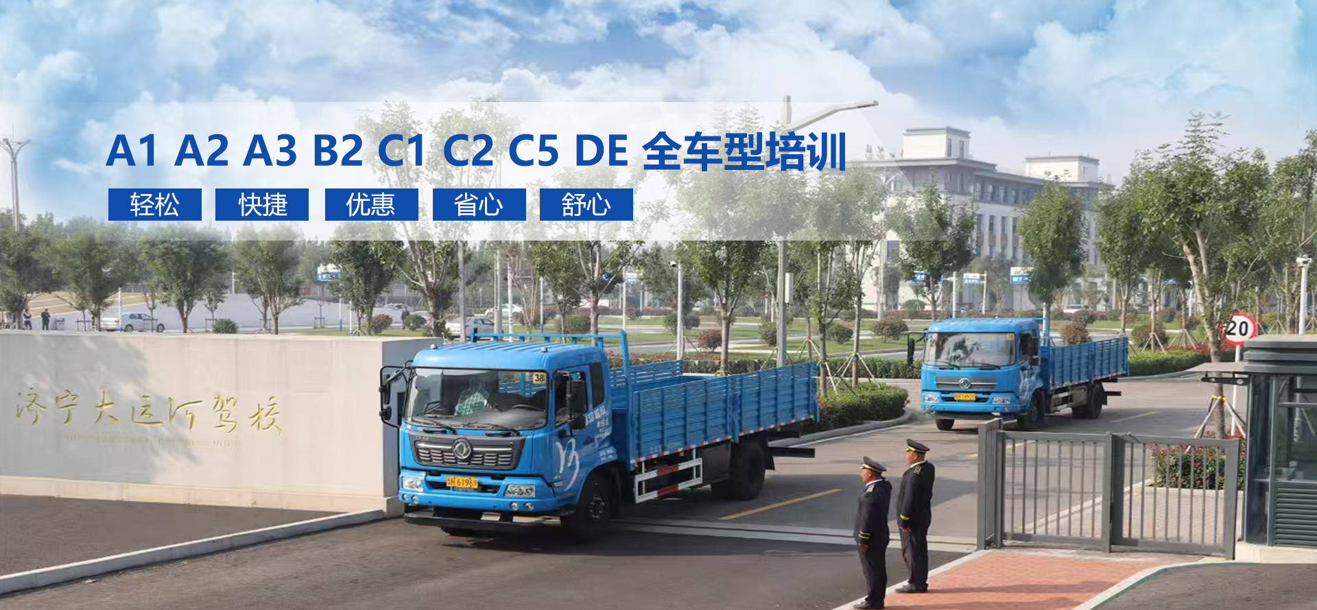 • 濟寧大運河駕駛員培訓有限公司成立于2011年7月,是經(jīng)市交通運輸主管部門批準成立的一家綜合類機動車駕駛員培訓公司,我們位于濟寧市運河經(jīng)濟開發(fā)區(qū)車站西路28號(西外環(huán)路與西十二路交匯處向東200米),占地面積160余畝,辦公面積1700平方米,現(xiàn)培訓車型有:大型載客汽車A1、通用貨車半掛車(牽引車)A2、城市公共汽車A3、大型貨車B2、小型汽車C1、小型自動擋汽車C2、殘疾人專用小型自動擋載客汽車C5、普通三輪摩托車D、普通兩輪摩托車E九種車型,教練車共計86輛(其中A1:1輛、A2:18輛、A3:1輛、B2:22輛、C1:32輛、C2:5輛、C5:1輛、D:4輛、E:2輛),2020年9月經(jīng)市審批主管部門批準設立道路客貨運輸駕駛員從業(yè)資格培訓及考場,可為各類從業(yè)駕駛員辦理從業(yè)資格證提供一站式服務。